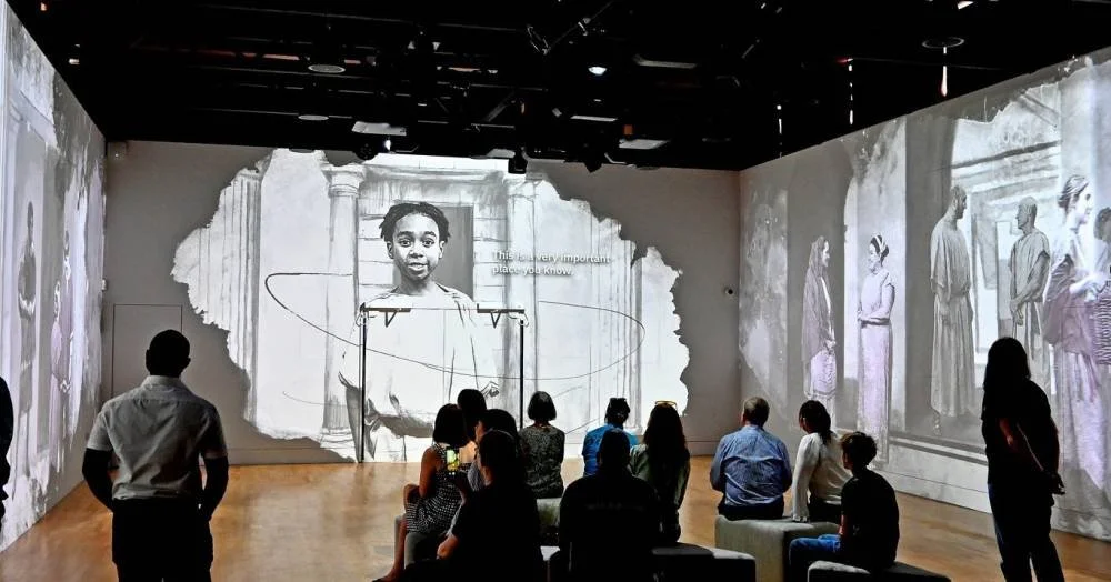We worked in collaboration with the artist Scott Tetlow to create a cohesive storybook world that plays out across three large walls, telling the story of a young boy and his dog as they expore the city of Ratae Corieltauvorum, as Leicester was then known.